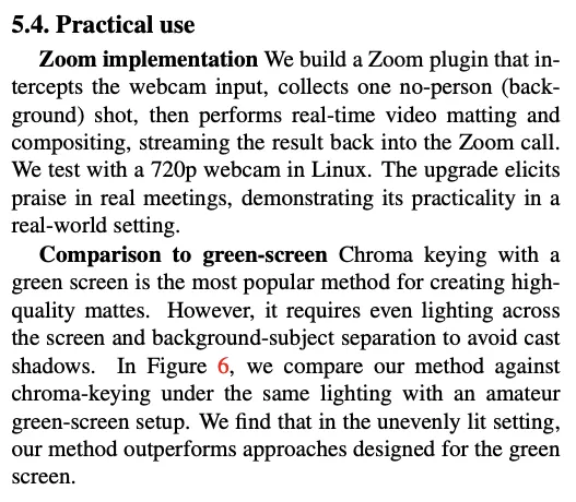 본 논문에서는 최초로 완전 자동화된 실시간 고해상도 매팅 기법을 도입하여 4K에서는 30fps, HD에서는 60fps로 실시간 백그라운드 교체를 제공함