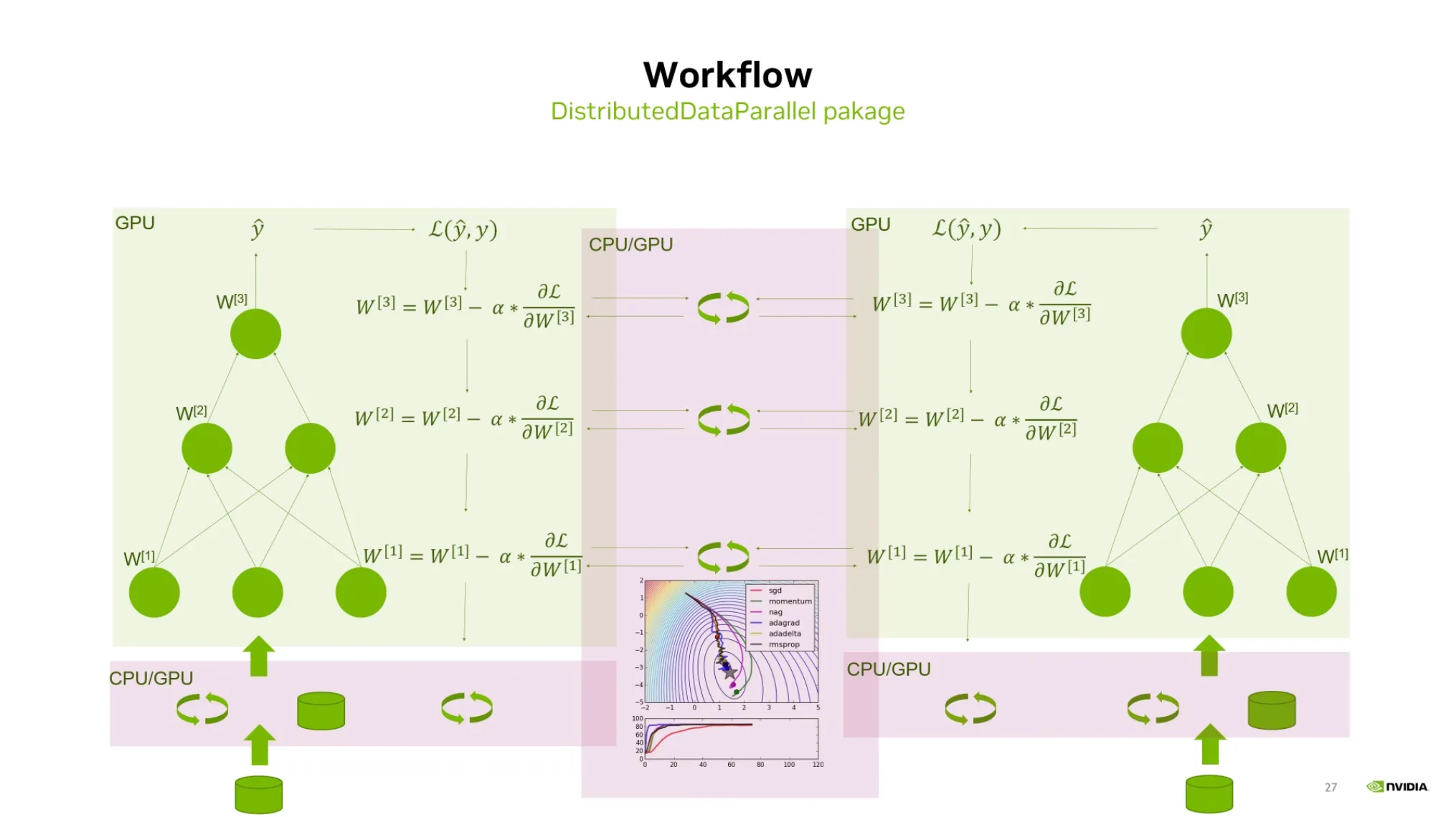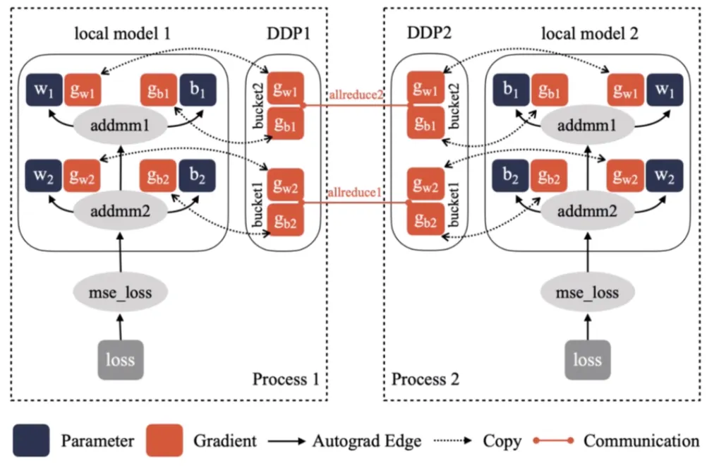 이 때, 똑같은 모델을 업데이트하기 위해 gradient를 동기화시켜주는 작업이 필요하다.