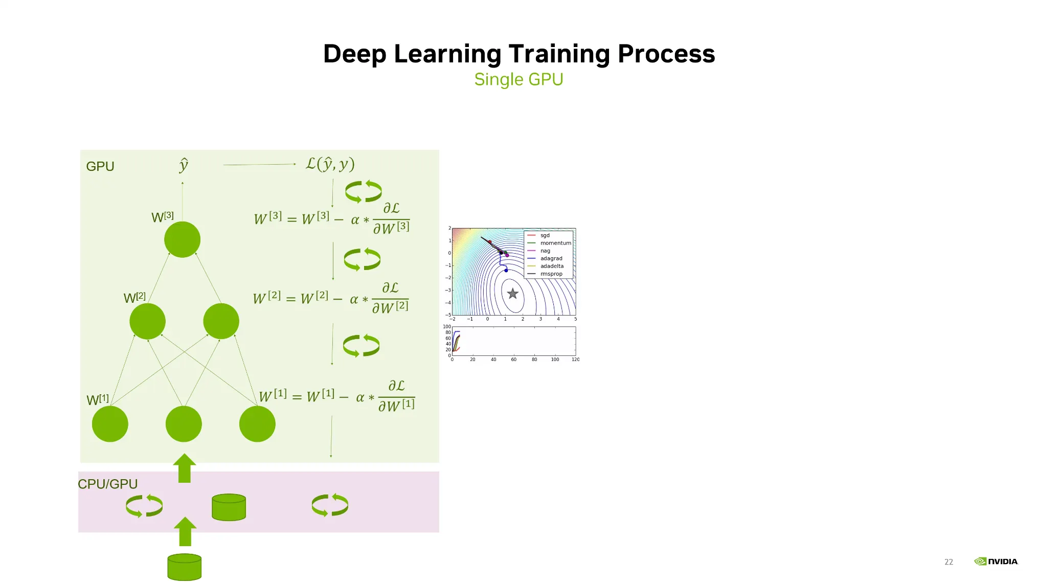 딥러닝의 학습은 Forward pass, loss computation, gradiant back propagation 과정을 거치며 이는 single GPU를 기반으로 구축되어있다.