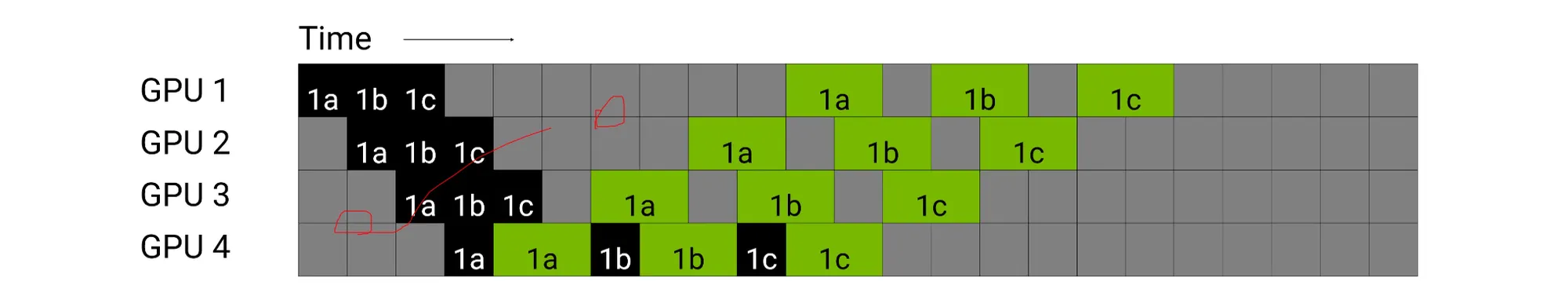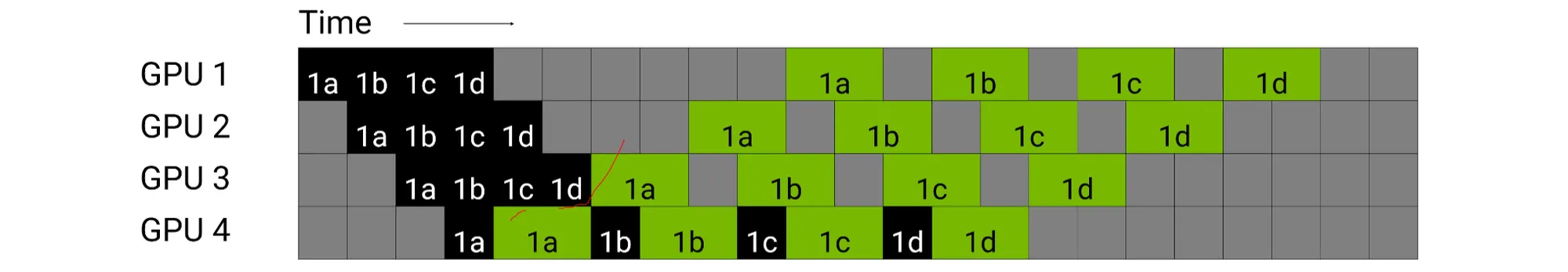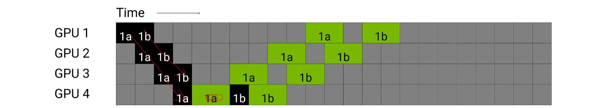 이를 해결하기 위해 micro batch로 나누어 GPU idle time을 최소화시킬 수 있다.