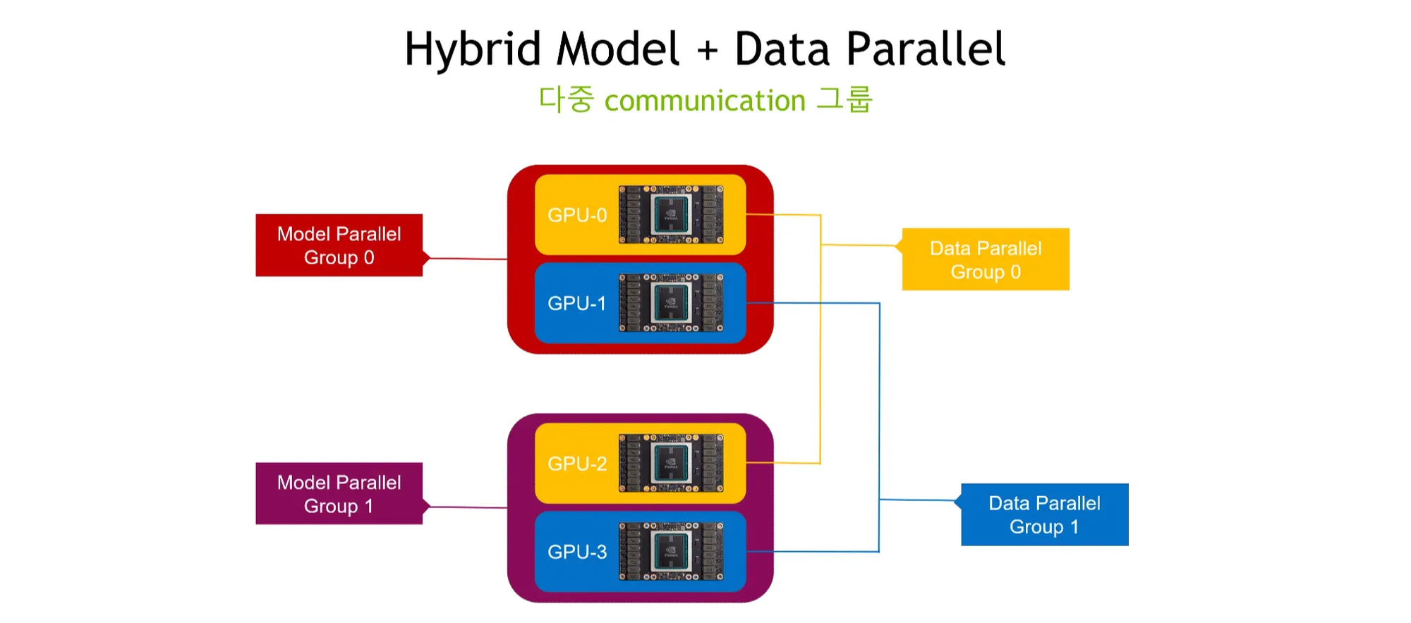node와 rank를 그룹으로 나누어 데이터 및 모델을 병렬화한다.
