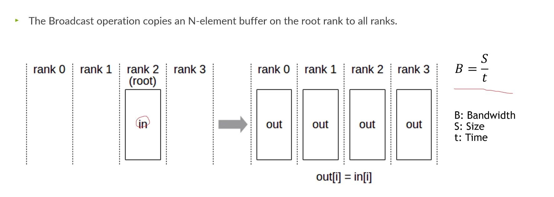 Broadcast: 데이터를 전체 rank에 걸쳐서 전송하는 것.