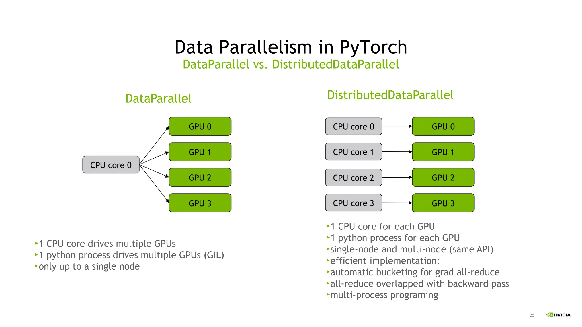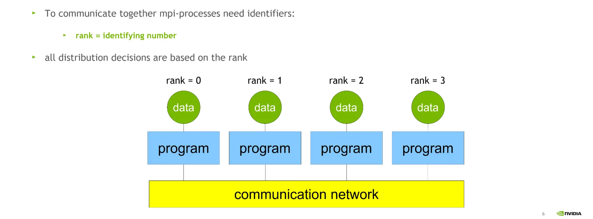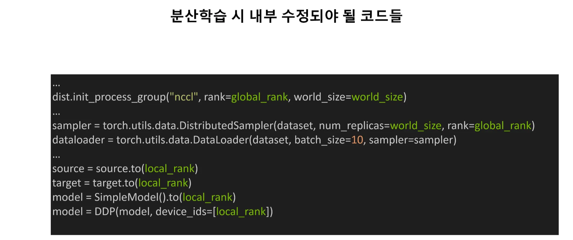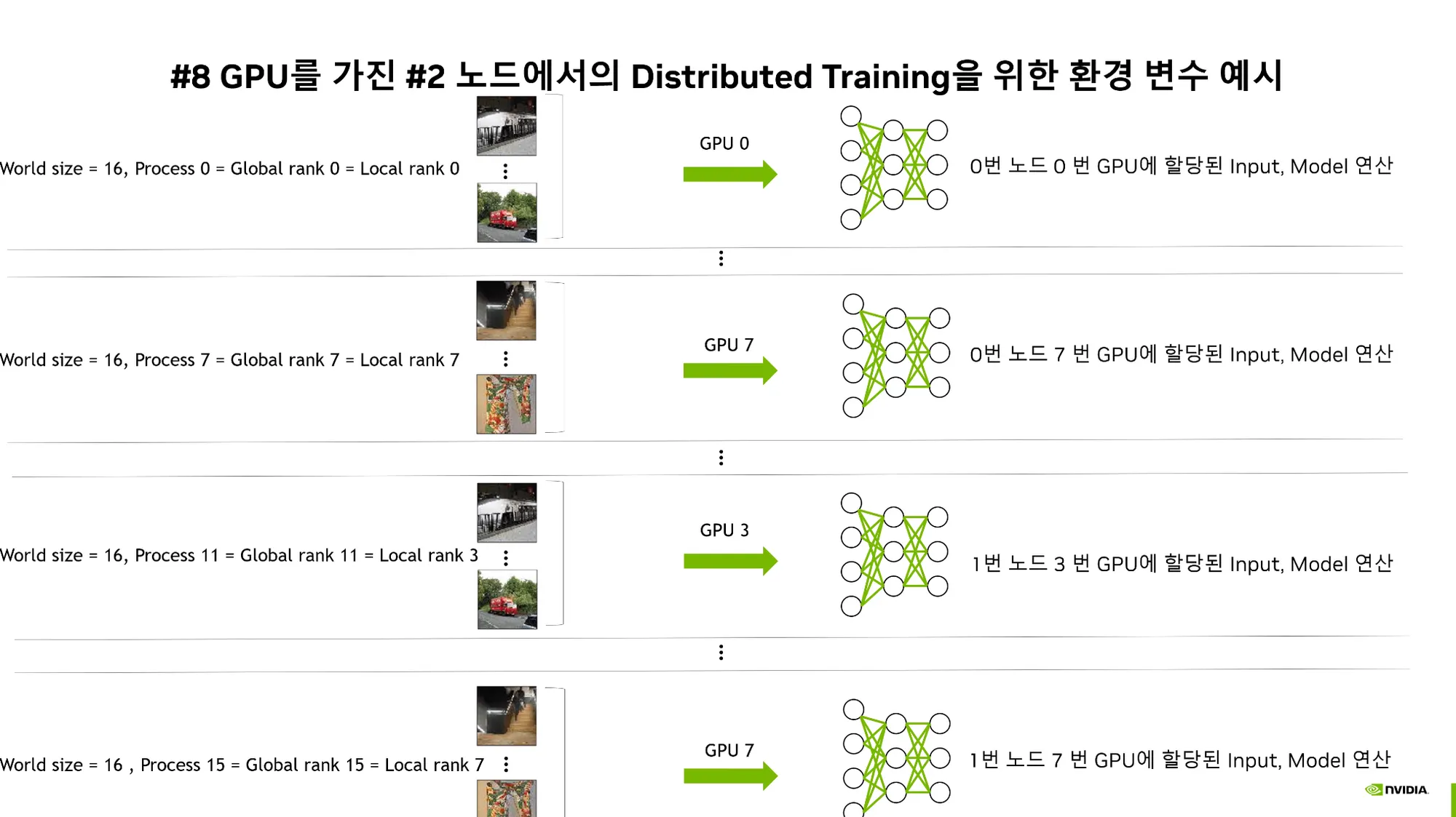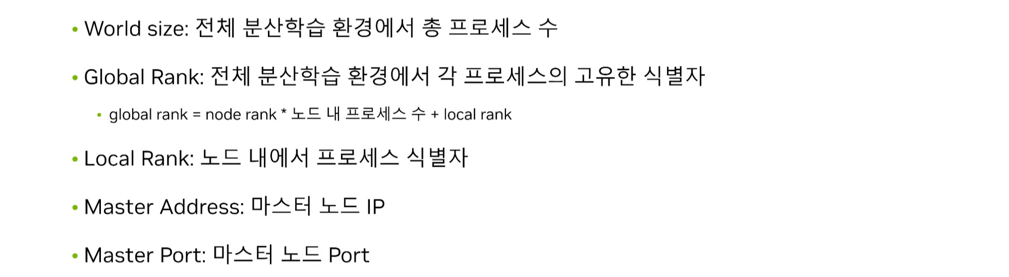 하나의 process에 하나의 GPU가 연결되어 병렬처리가 가능함.
