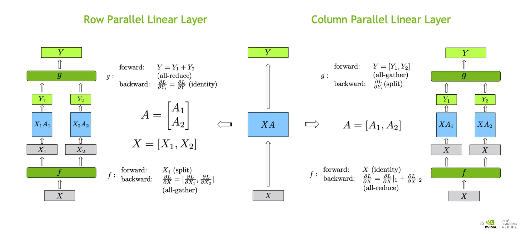 forward 연산은 split으로 나누어준 후 마지막에 allgather 연산으로 합쳐준다.