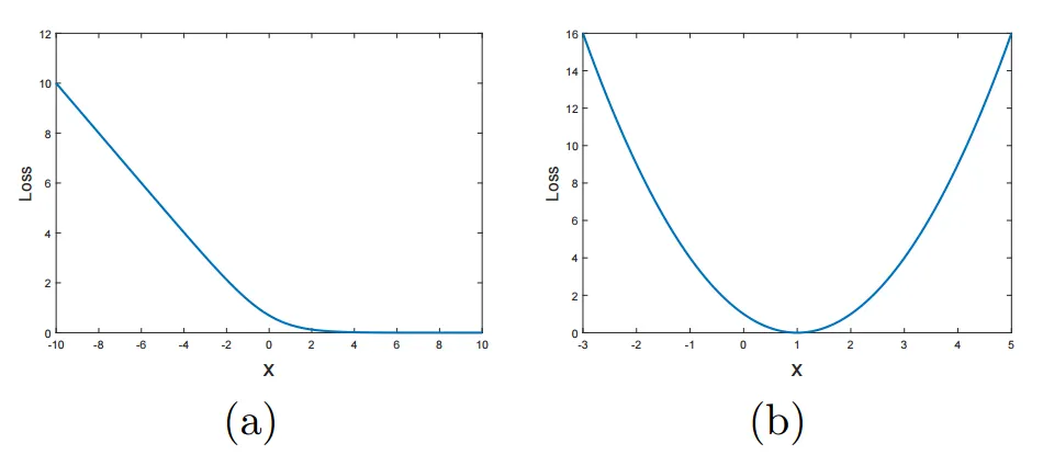 (a) The sigmoid cross entropy loss (b) The least square loss