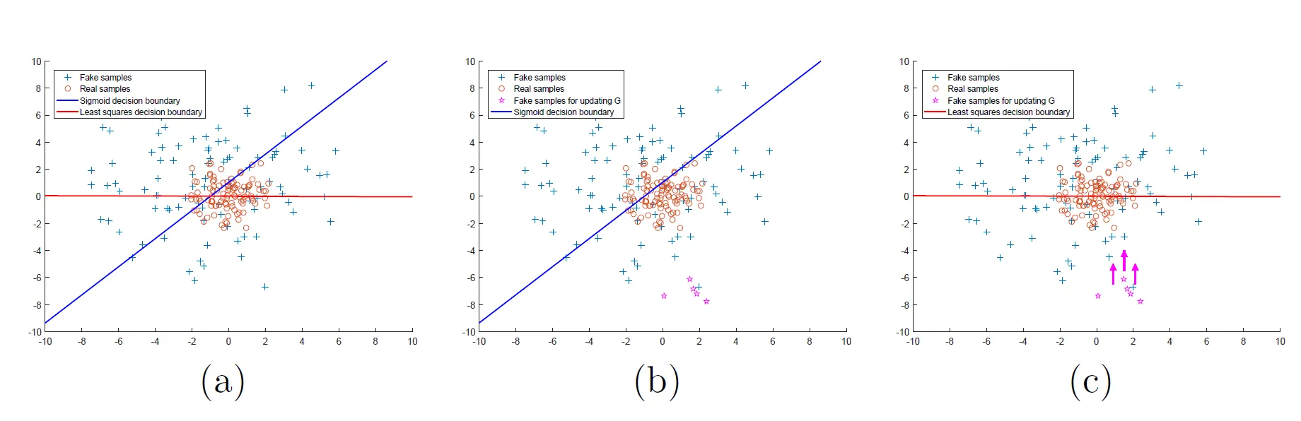 기존 GAN은 generator가 만든 sample이 실제 data distribution과 거리가 멀지라도, sigmoid cross entropy loss function 입장에서는 일단 discriminator를 속이기만 하면 문제가 없기 때문에 별다른 피드백을 주기 어렵습니다.