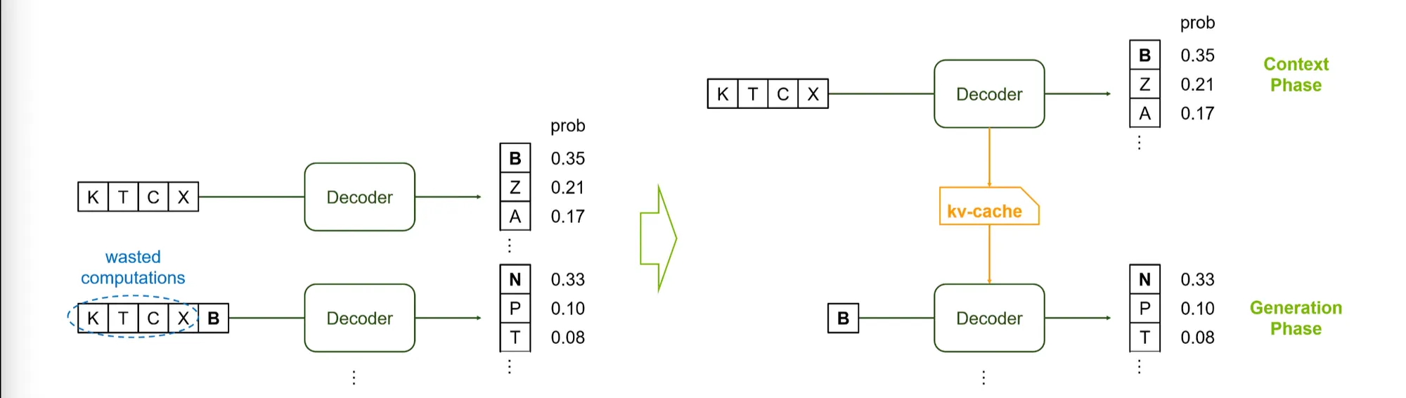 이전에 계산된 KV값들을 캐쉬로 저장하고 이를 이용해 next step을 계산한다.