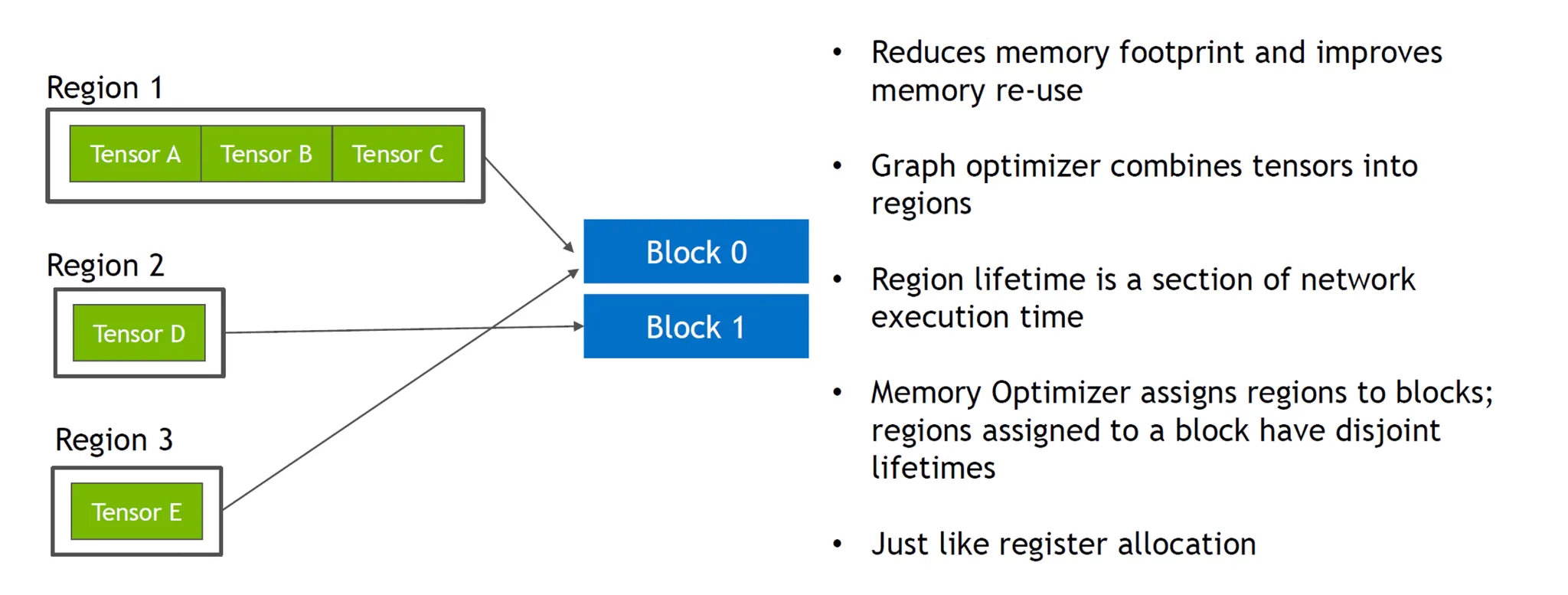 Region별로 메모리 블럭을 만든 후 공유하며 재사용하는 기법.
