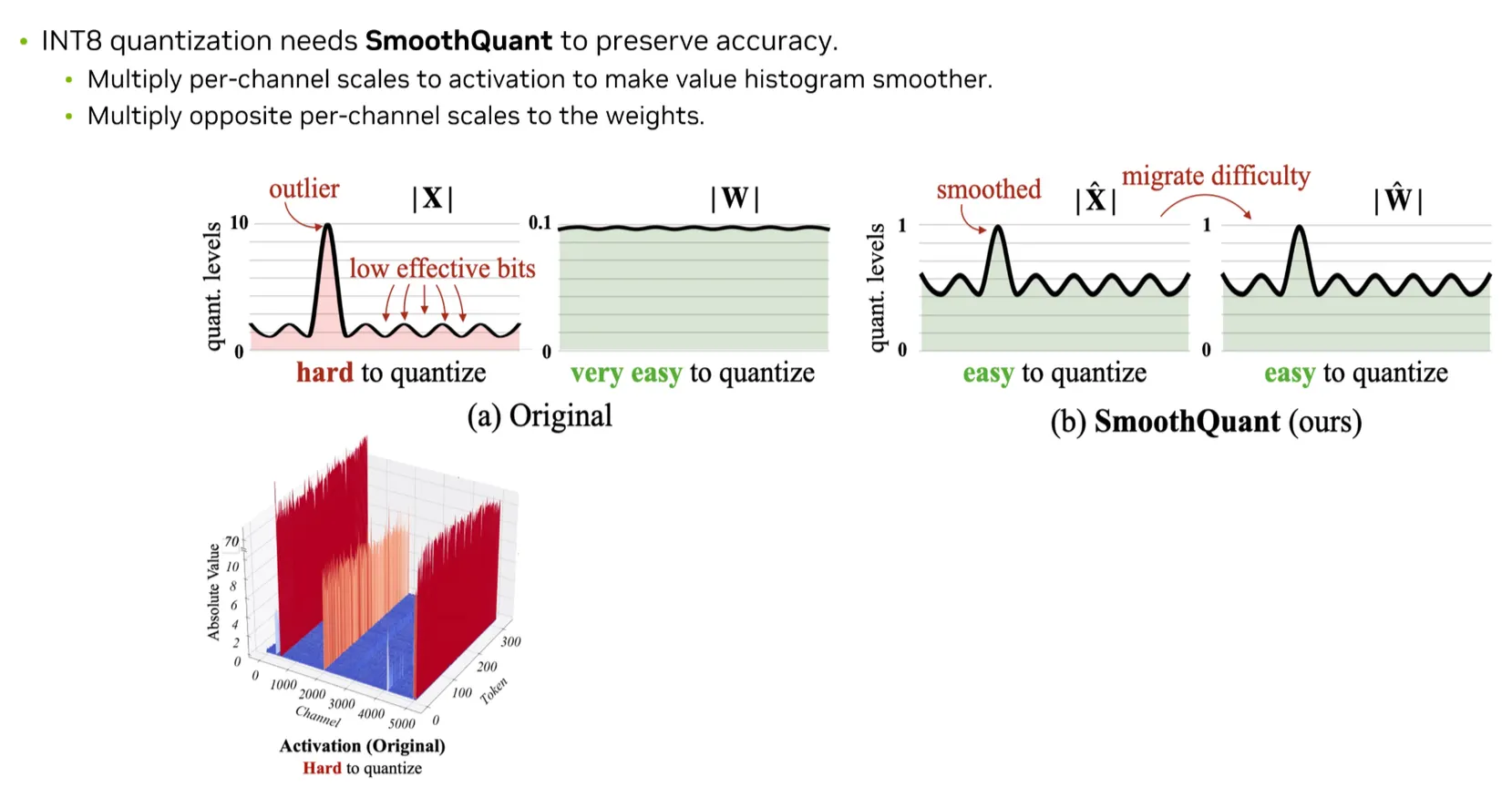 Weight에 대한 Quantization은 쉬운 반면 Activation에 대한 Quantization은 매우 어렵다.