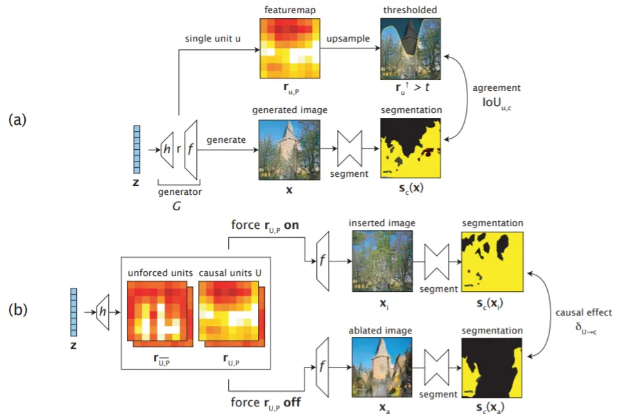 목적: 생성적 적대 신경망(GAN)의 내부 표현을 분석하여 생성 이미지의 특정 요소와 연결된 뉴런을 식별함.