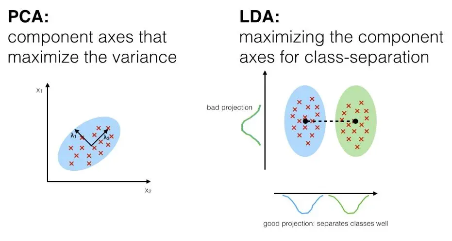 클래스 간 분산을 최대화하고 클래스 내 분산을 최소화하는 방향으로 데이터를 변환.