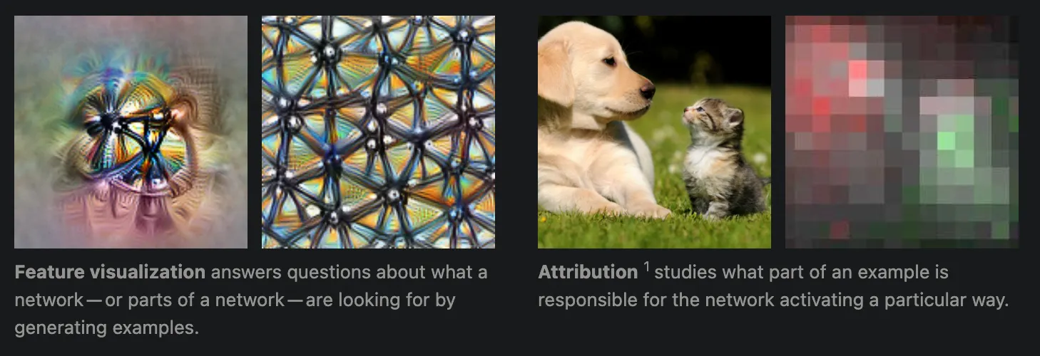 신경망을 인간이 해석할 수 있어야 한다는 필요성이 점점 강조되면서, 신경망 해석 가능성(neural network interpretability) 분야가 빠르게 발전하고 있습니다. 특히, 비전 분야에서는 feature visualization과 attribution 두 가지 접근법이 활발히 연구되고 있습니다.