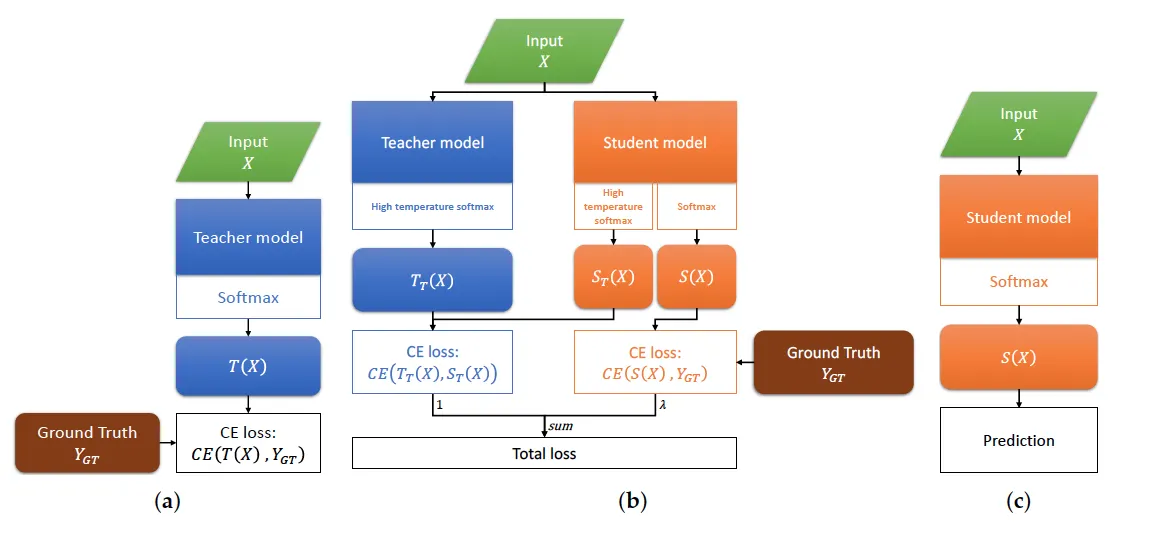 Figure 2. (a) Train the teacher model directly on dataset; (b) The process of KD training. The student