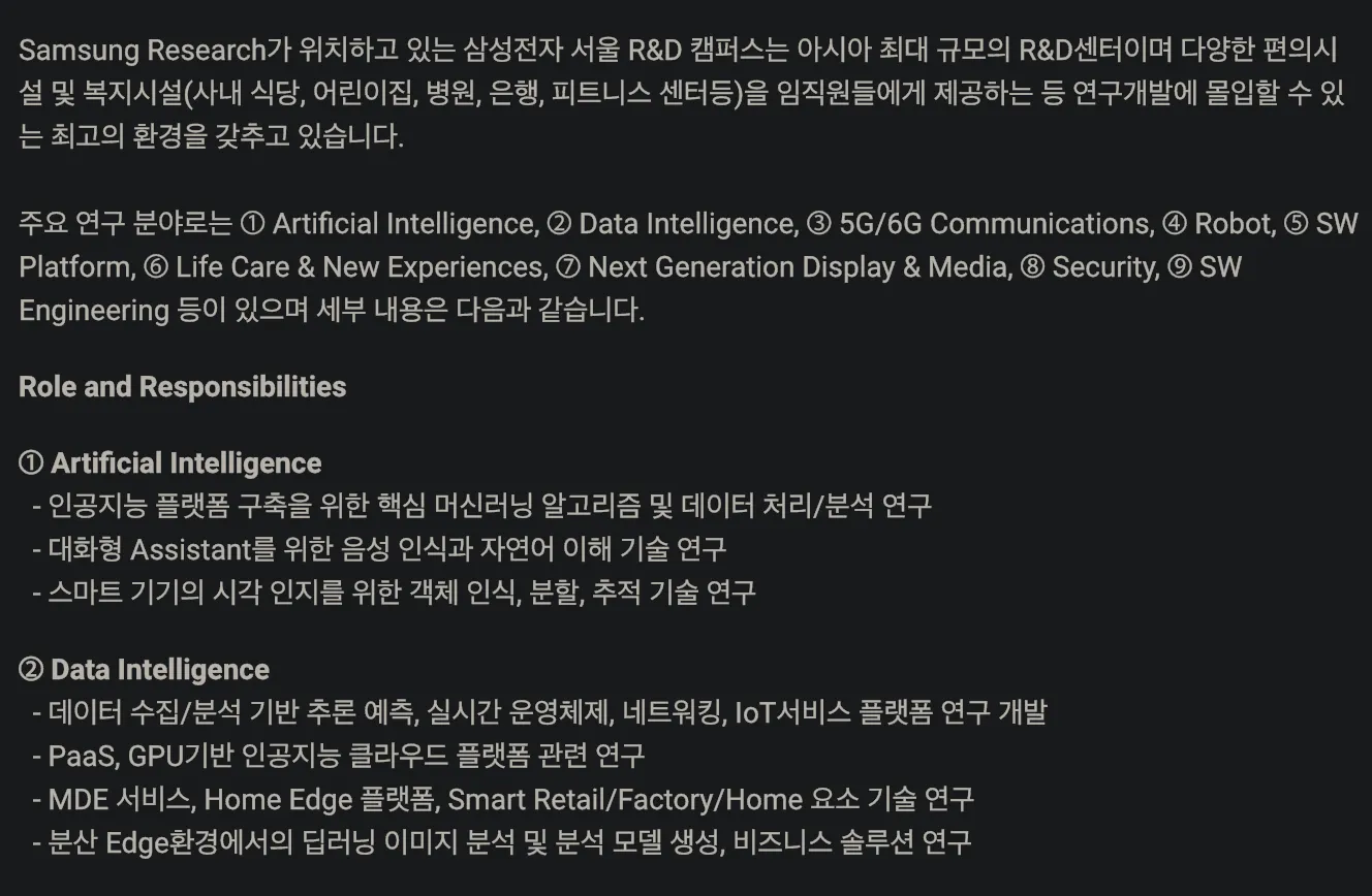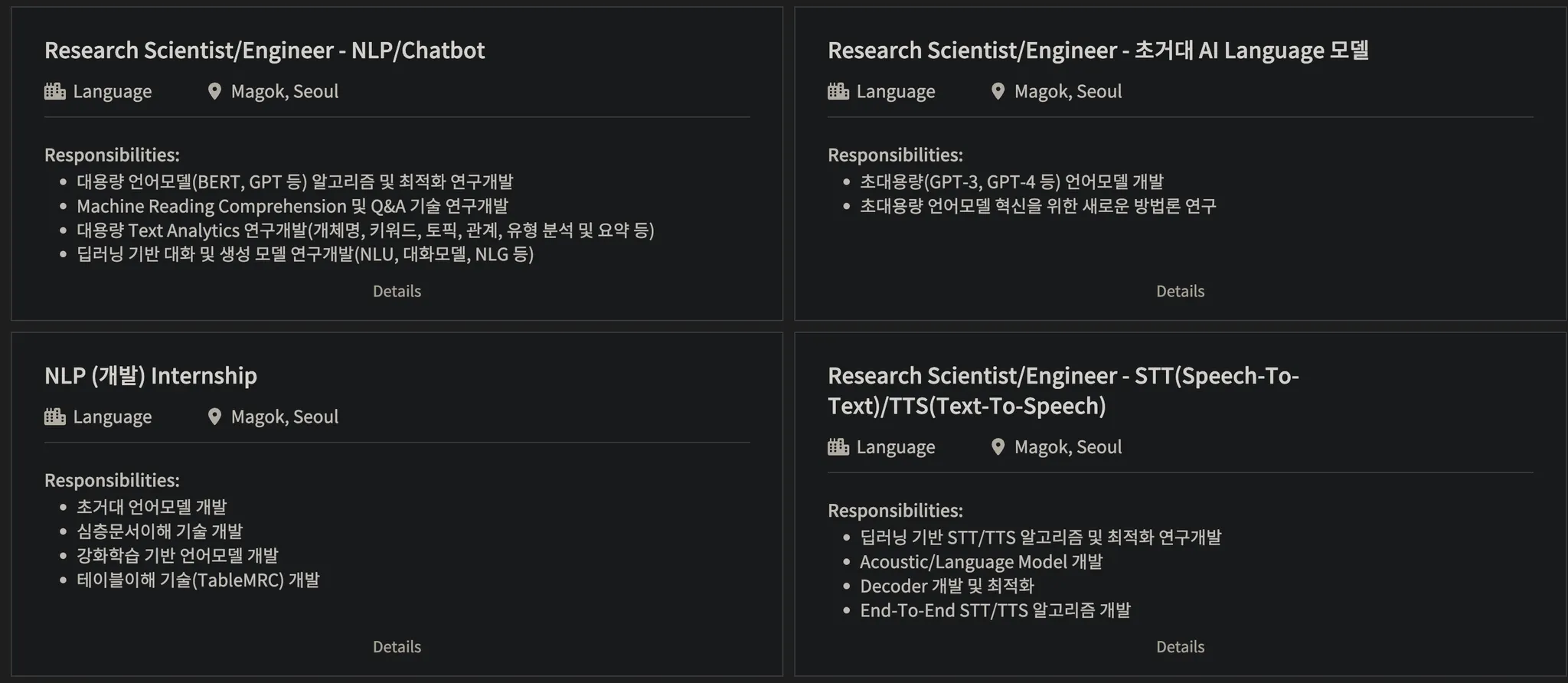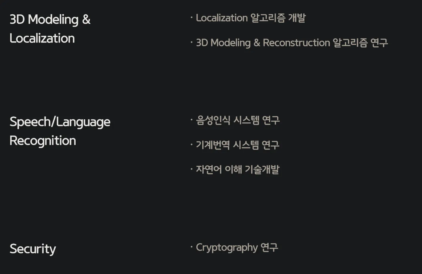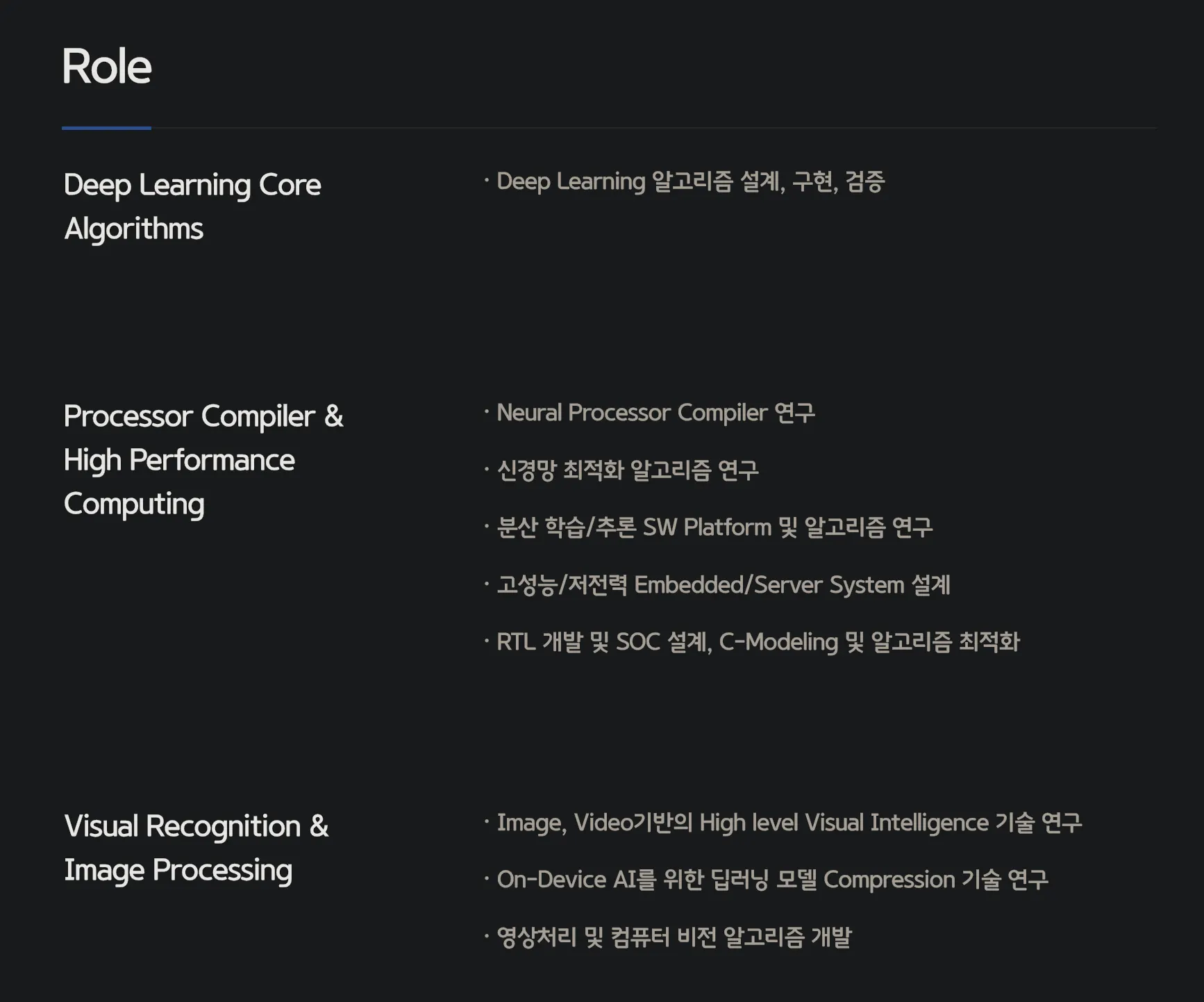 주로 챗봇이나 가전에 관련된 AI 기술 (경량화, Edge deep learning, inference 등) 을 개발하는 업무를 하는 듯 하다.