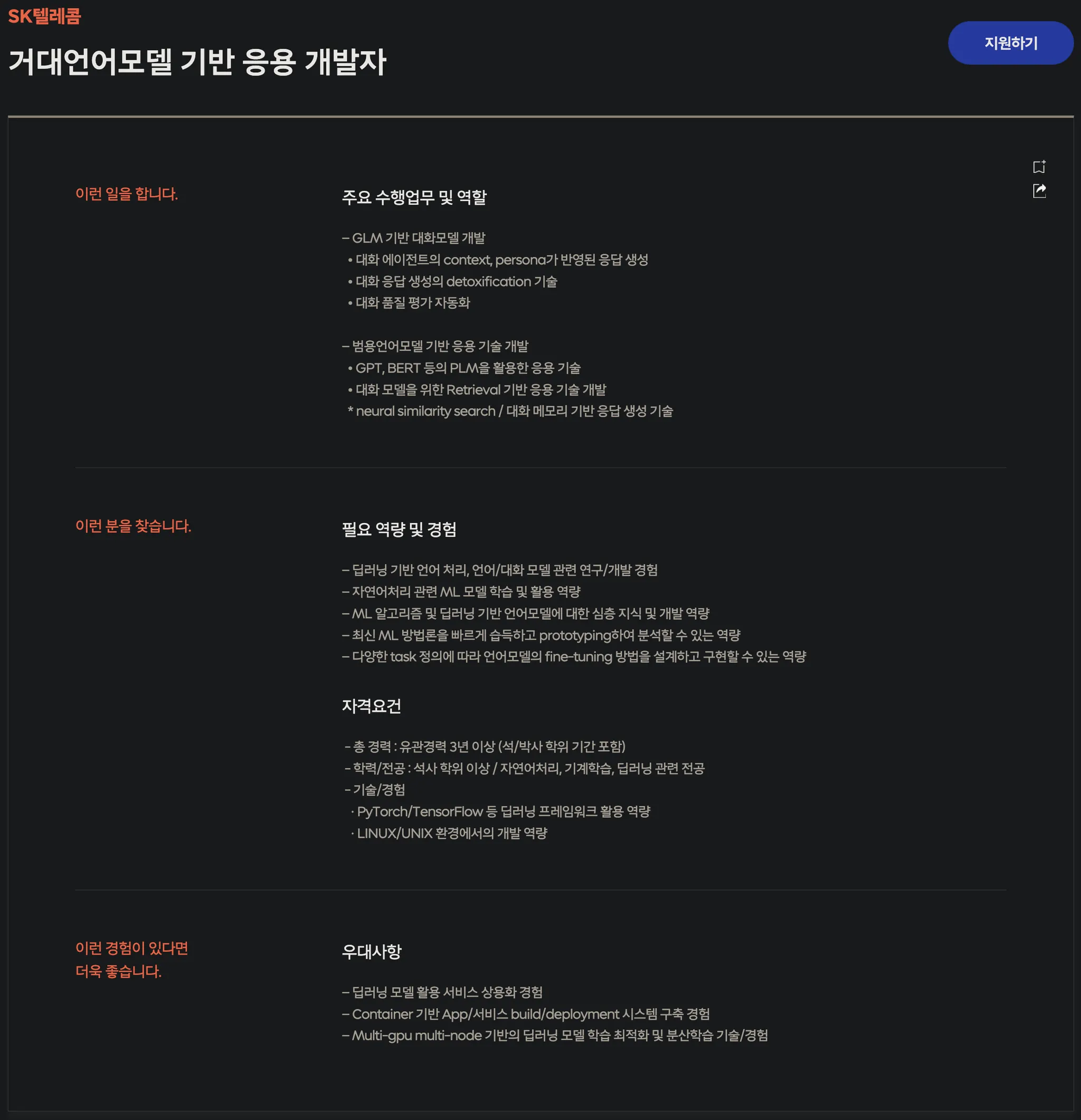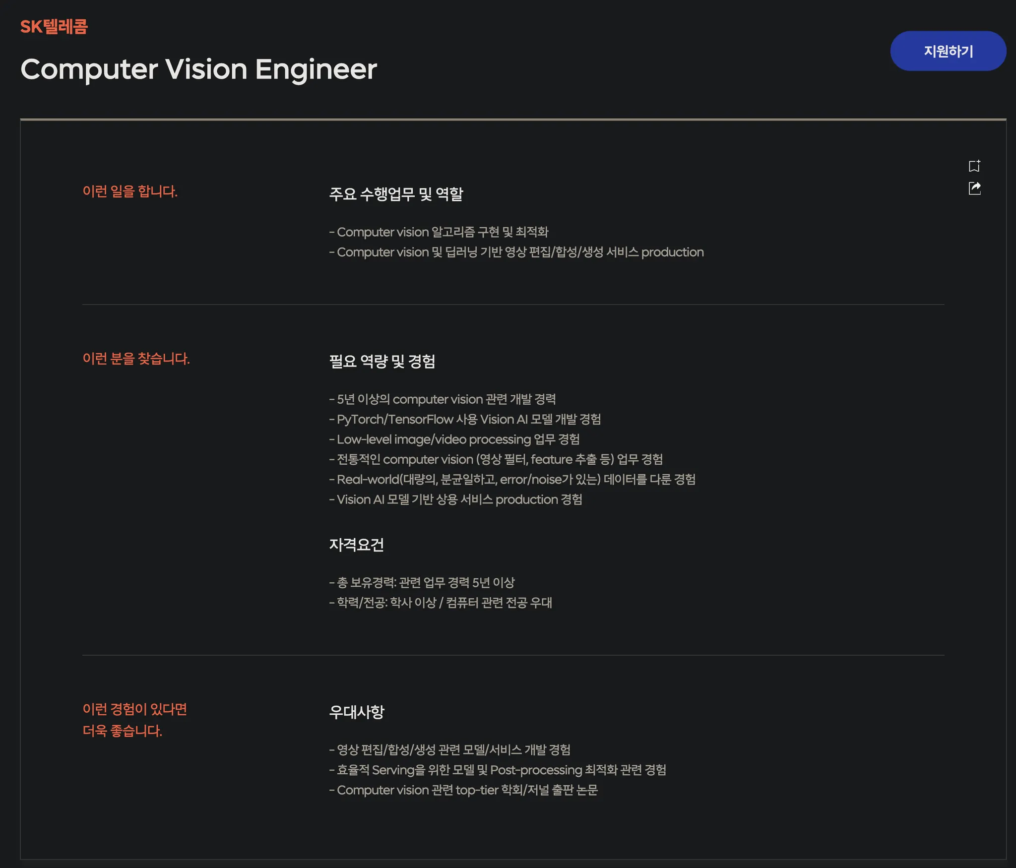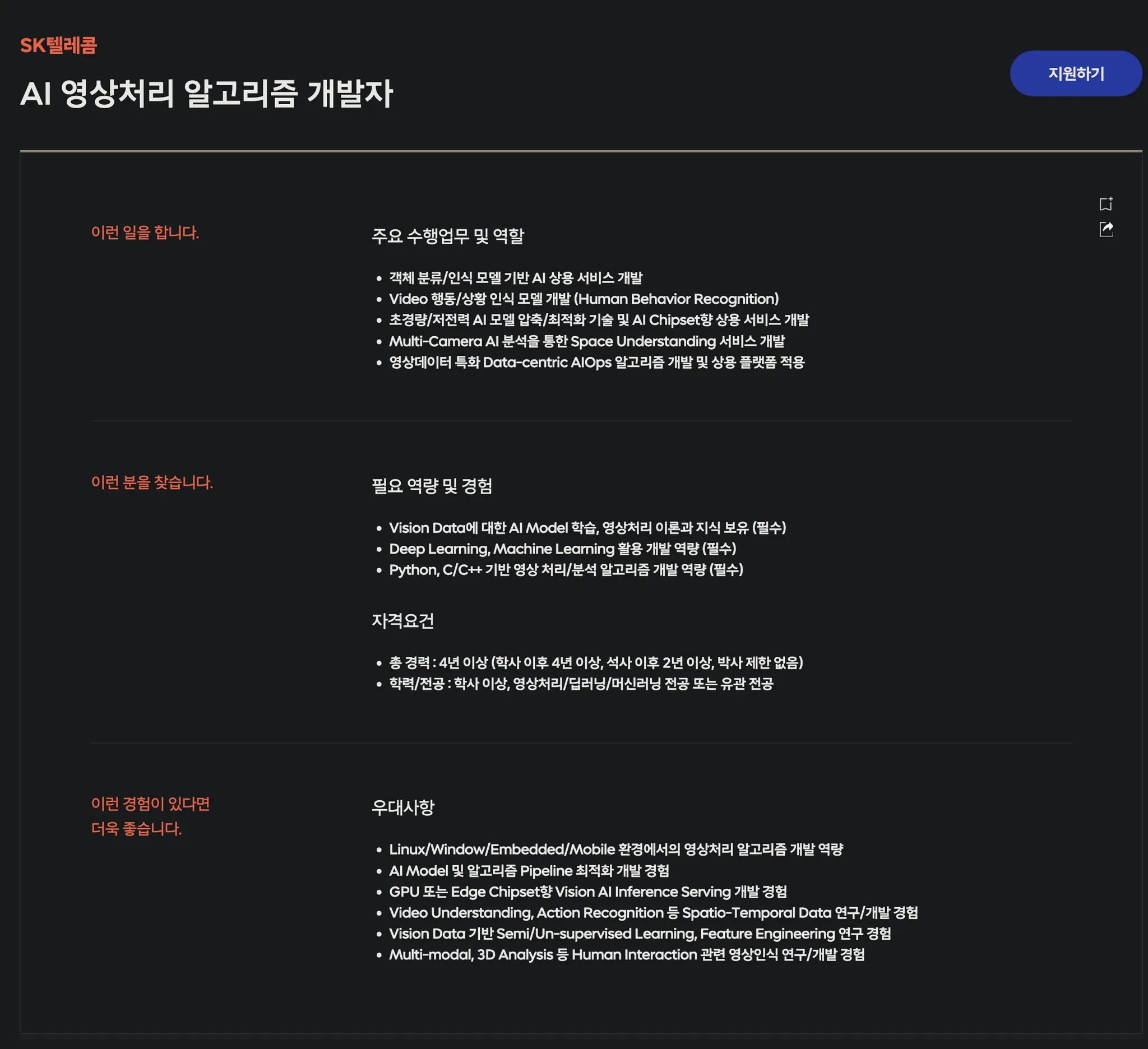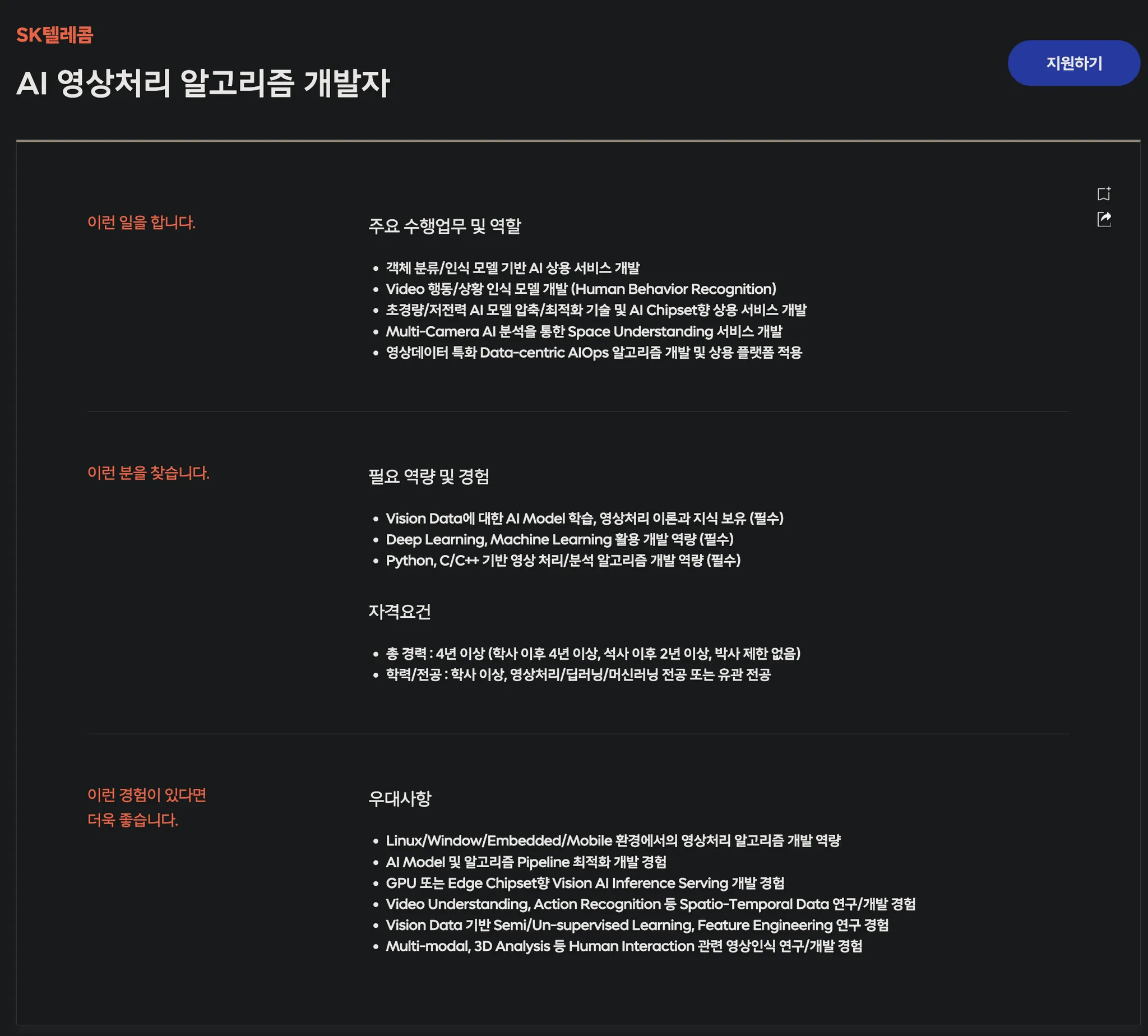 의외로 SK Telecom에서도 AI 개발자를 채용하고 있다.