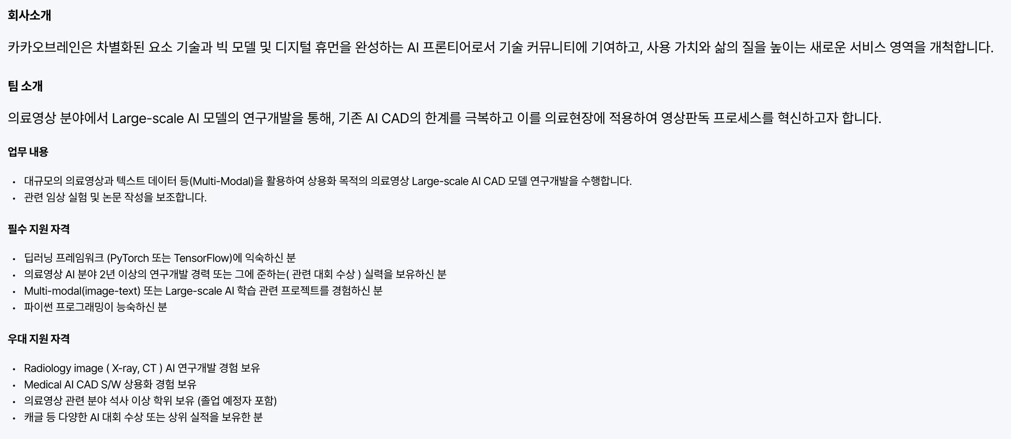 카카오브레인은 2022년 Medical Segmentation쪽으로 보폭을 넓히며 대규모 채용을 시행하고 있다.