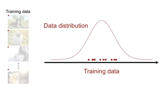 먼저, 좌측과 같은 강아지 이미지들이 있다고 할 때, 이 Data의 Distribution은 붉은색 선과 같다고 볼 수 있다.