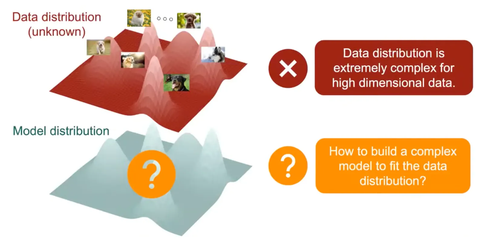 따라서 Deep Generative Models의 목표는 더욱 복잡한 모델을 도입하여 데이터의 분포를 효과적으로 추정하는 것이다.