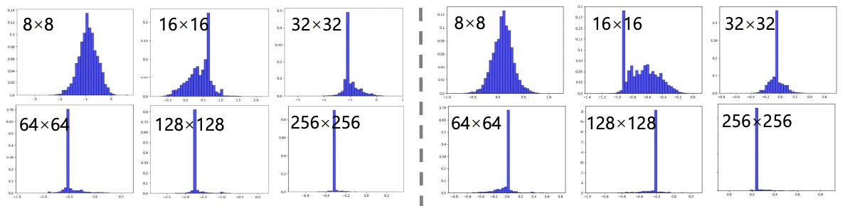 Resolution이 커질 수록 distribution은 concentrated, centralized 되는 경향이 뚜렷하게 보였다.