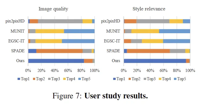 기존 SPADE류의 방법은 Style을 입히기 위해 Style Image를 Encoder로 인코딩하여 parameter mu와 sigma를 구한 후, 이 Source Distribution으로부터 sampling하여 Generator의 Input으로 넣어주었던 것과 달리