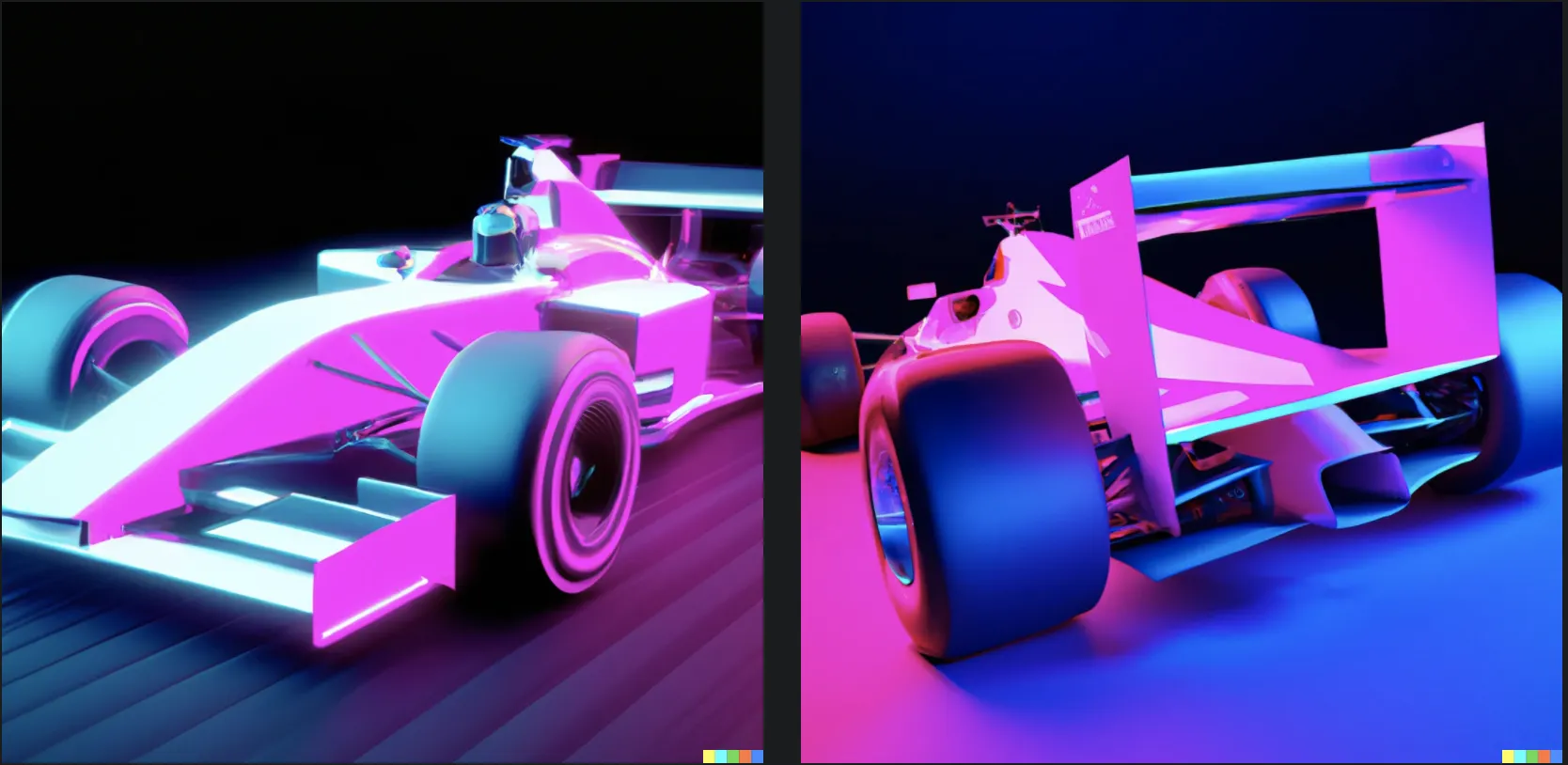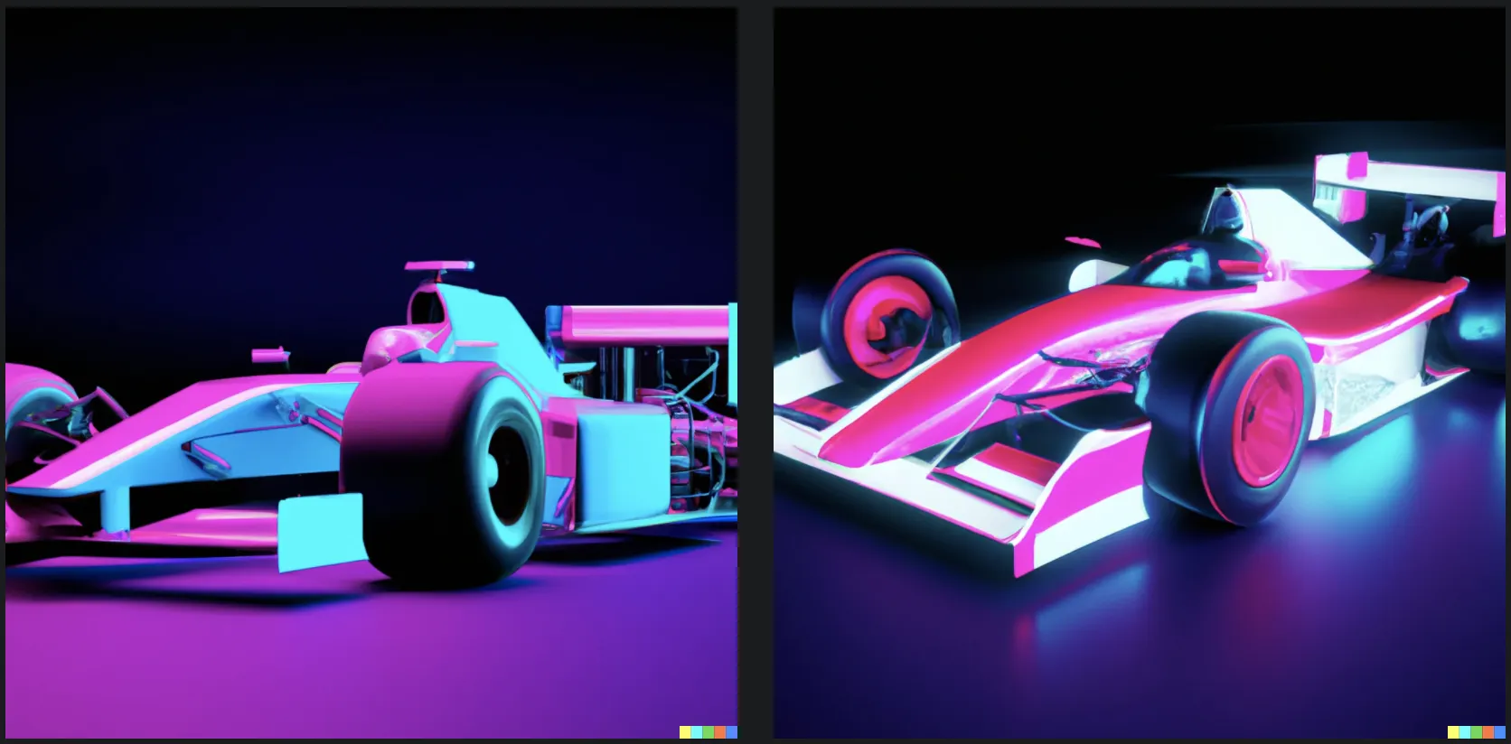 신스웨이브 스타일의 포뮬러 1 카 (A synthwave style formula 1 car, 3d illustration)