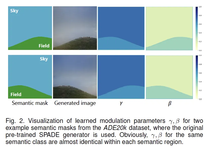 이렇게 spatial 정보를 의도적으로 무시한 것은 SPADE의 modulation network 출력이 spatial-adaptive하지 않고 결국 한 값으로 수렴함을 관찰했기 때문에, 이러한 관찰을 바탕으로 이럴바에 그냥 상수값 하나만 잘 쓰자 라고 설계한듯 합니다.