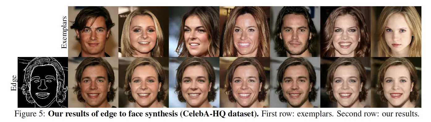 스타일 이미지 (Examplar)와 다양한 종류의 Conditional Input (Semantic map, pose, edge, layout 등)을 이용하여 새로운 이미지를 생성한다.