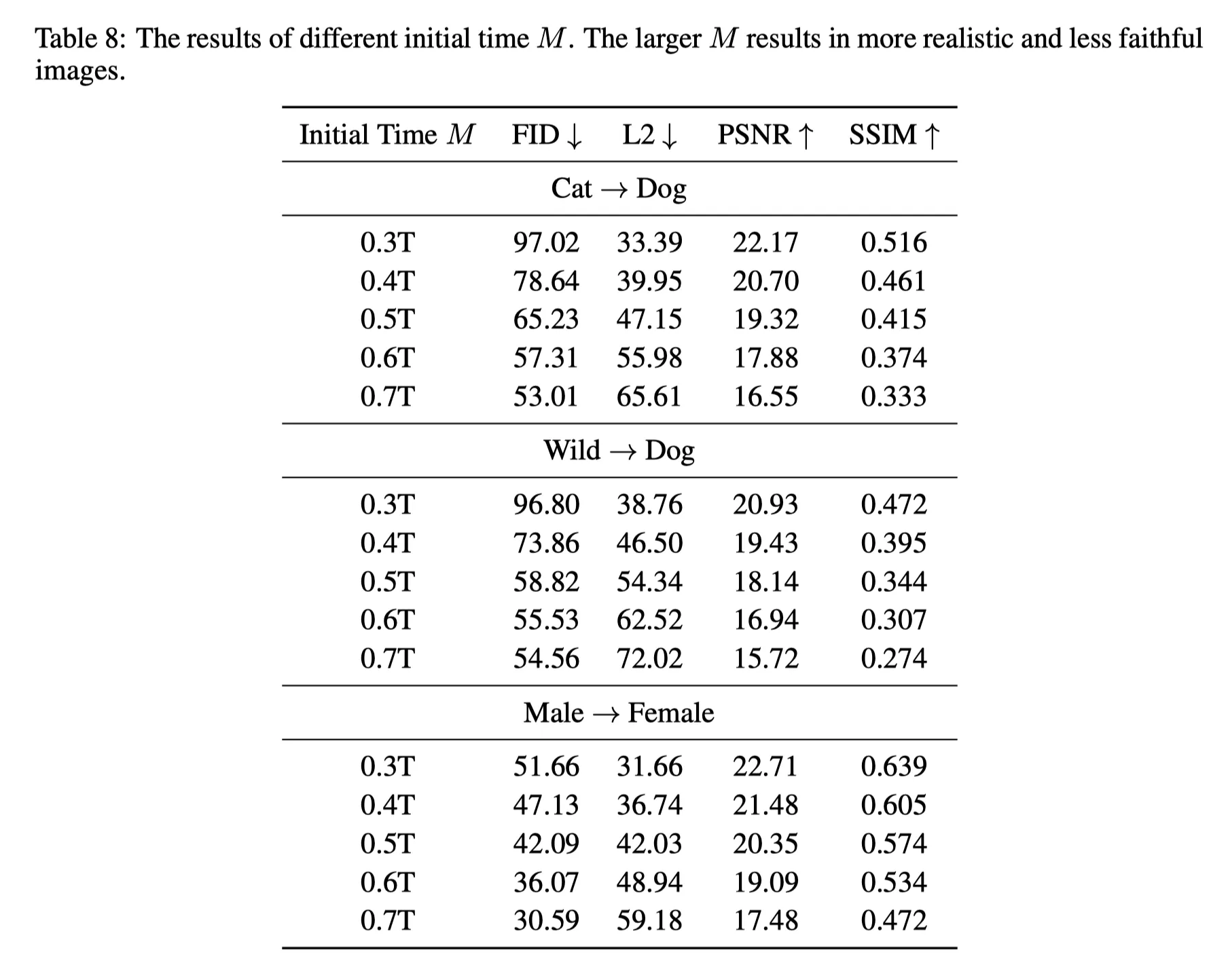 Initial Time M의 선택 (Figure 4, Table 8): 가 최적.