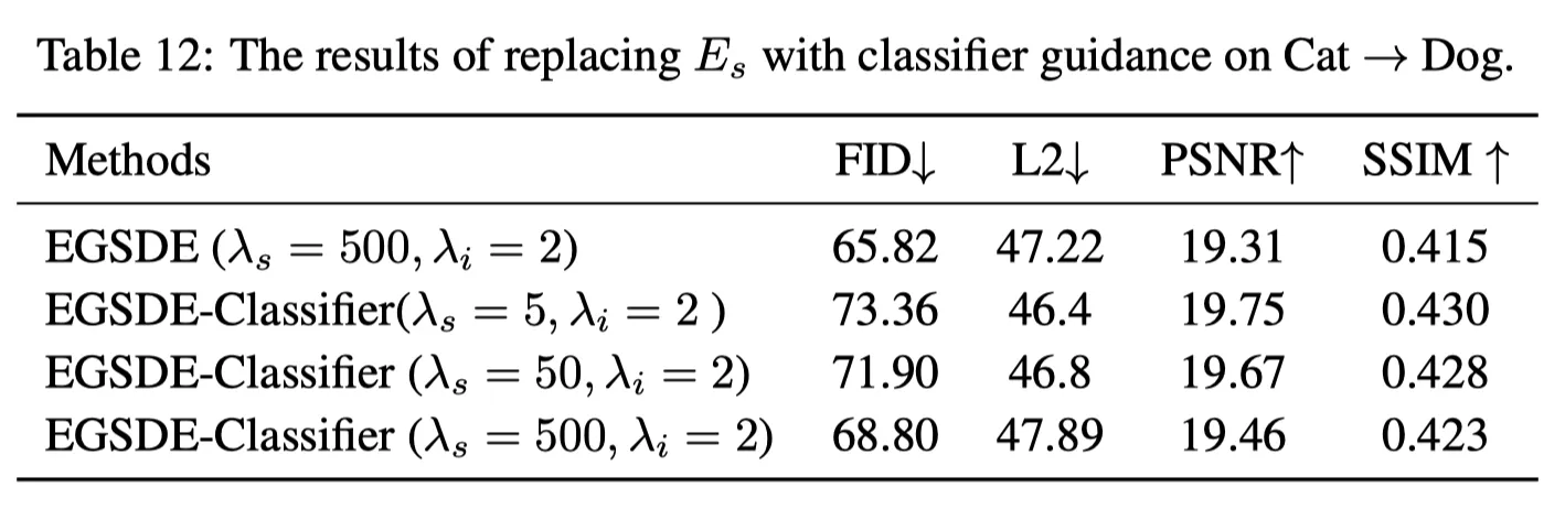 저자는 Appendix 12에서 를 classifier guidance로 교체한 실험도 제공한다.