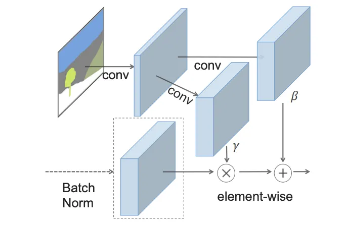 modulation parameter들은 semantic mask에 의해 conditioned된다.