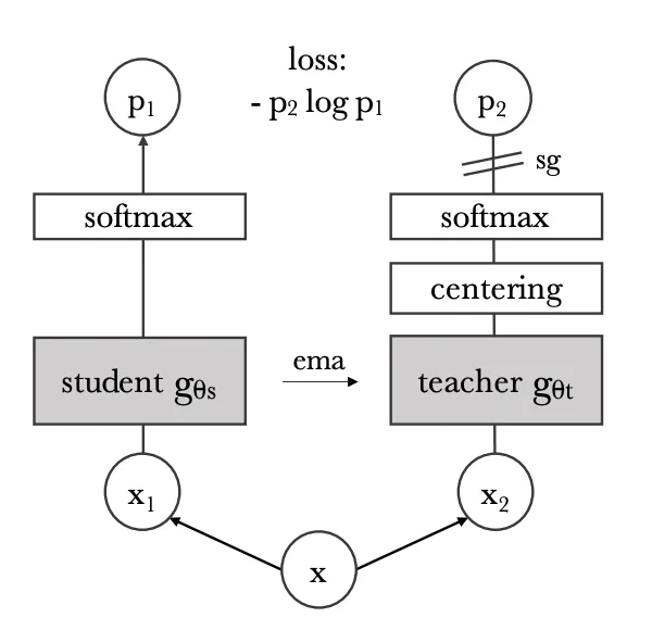 Algorithm 1. DINO PyTorch pseudocode w/o multi-crop. from paper.