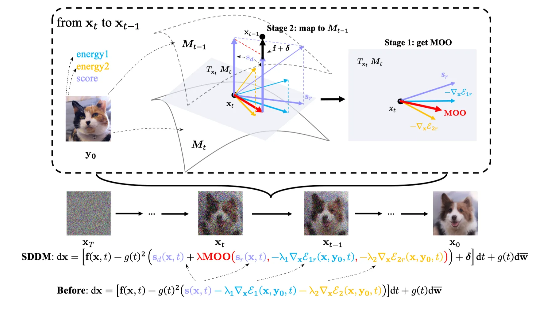 이를 극복하기 위해, 저자는 score function을 새로운 manifold 상에서 정의하고 분해 (decompose) 할 것을 제안합니다. 이를 통해 더욱 나은 에너지 가이던스와 statistical 가이던스를 제공할 수 있다고 주장한다.
