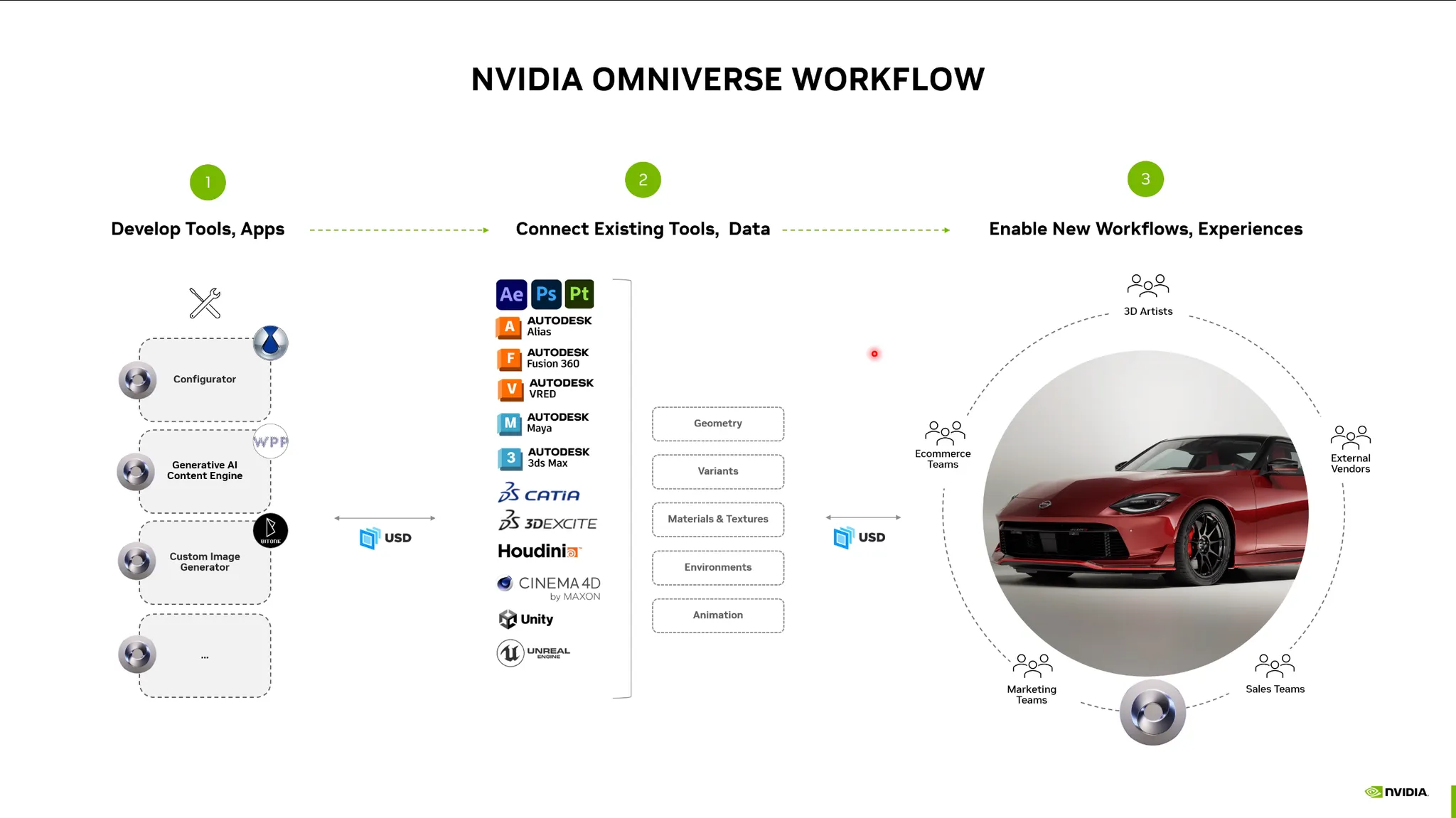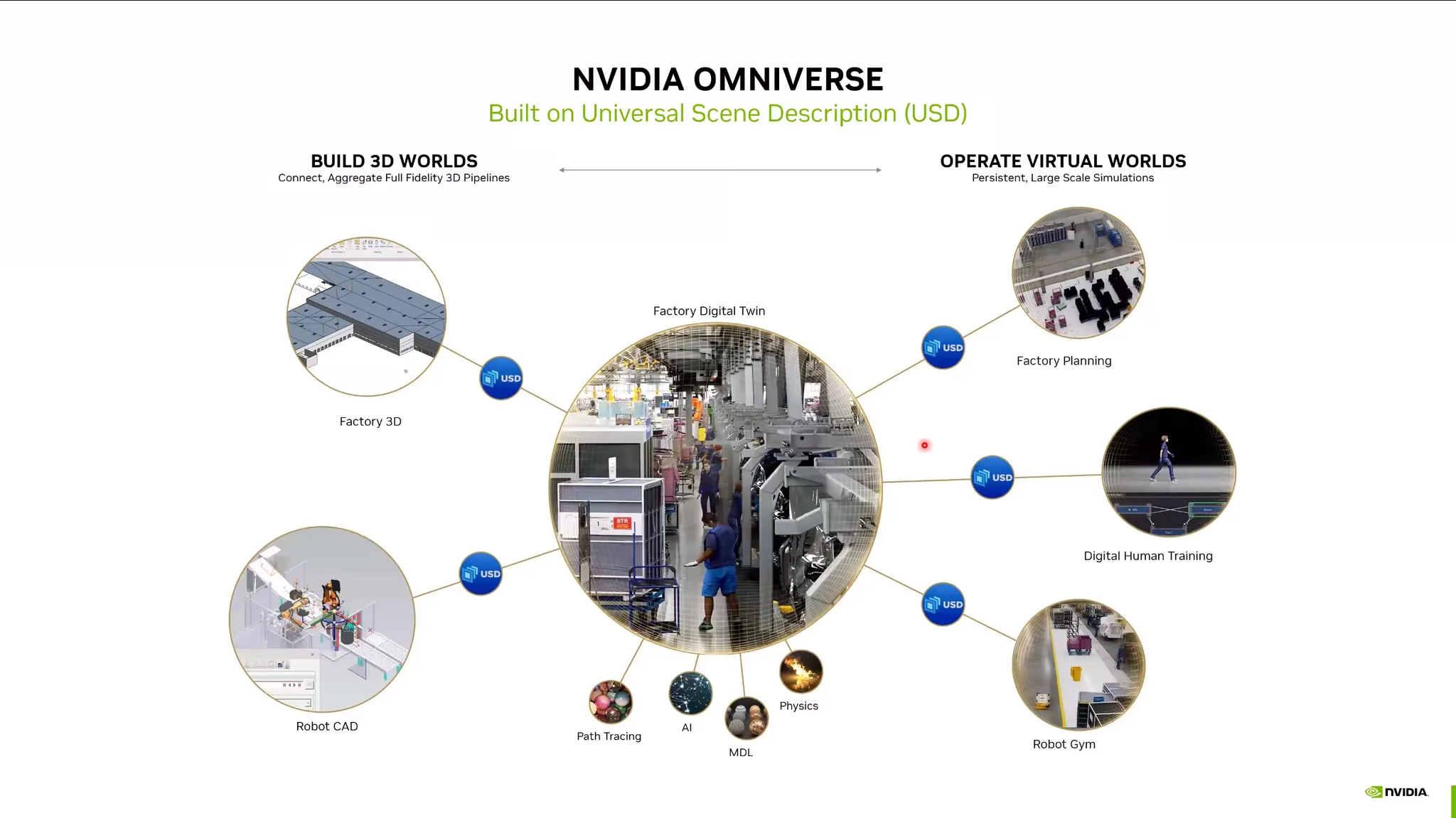 이를 USD (Universal Scene Description) 포멧으로 통합하여 3D 로직을 처리할 수 있음.