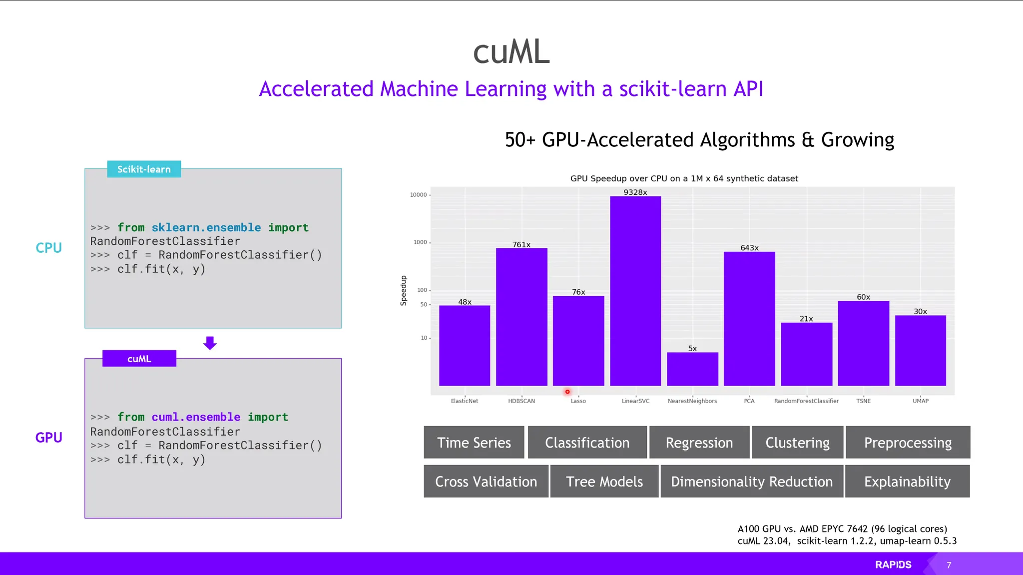 sklearn을 GPU 가속화한 라이브러리. (48x ~ 9328x)