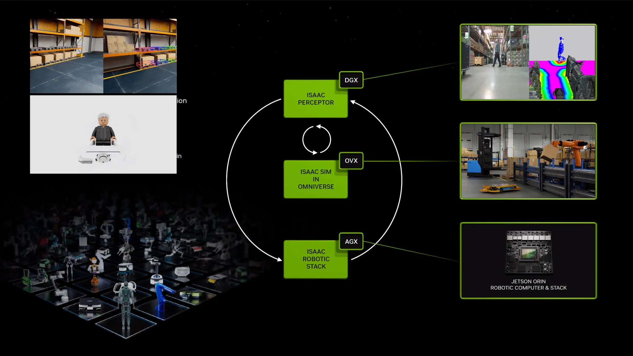 가상공간을 옴니버스로 시뮬레이션하고 AI 모델을 시뮬레이션 할 수 있음. (로보틱스, 자율주행)
