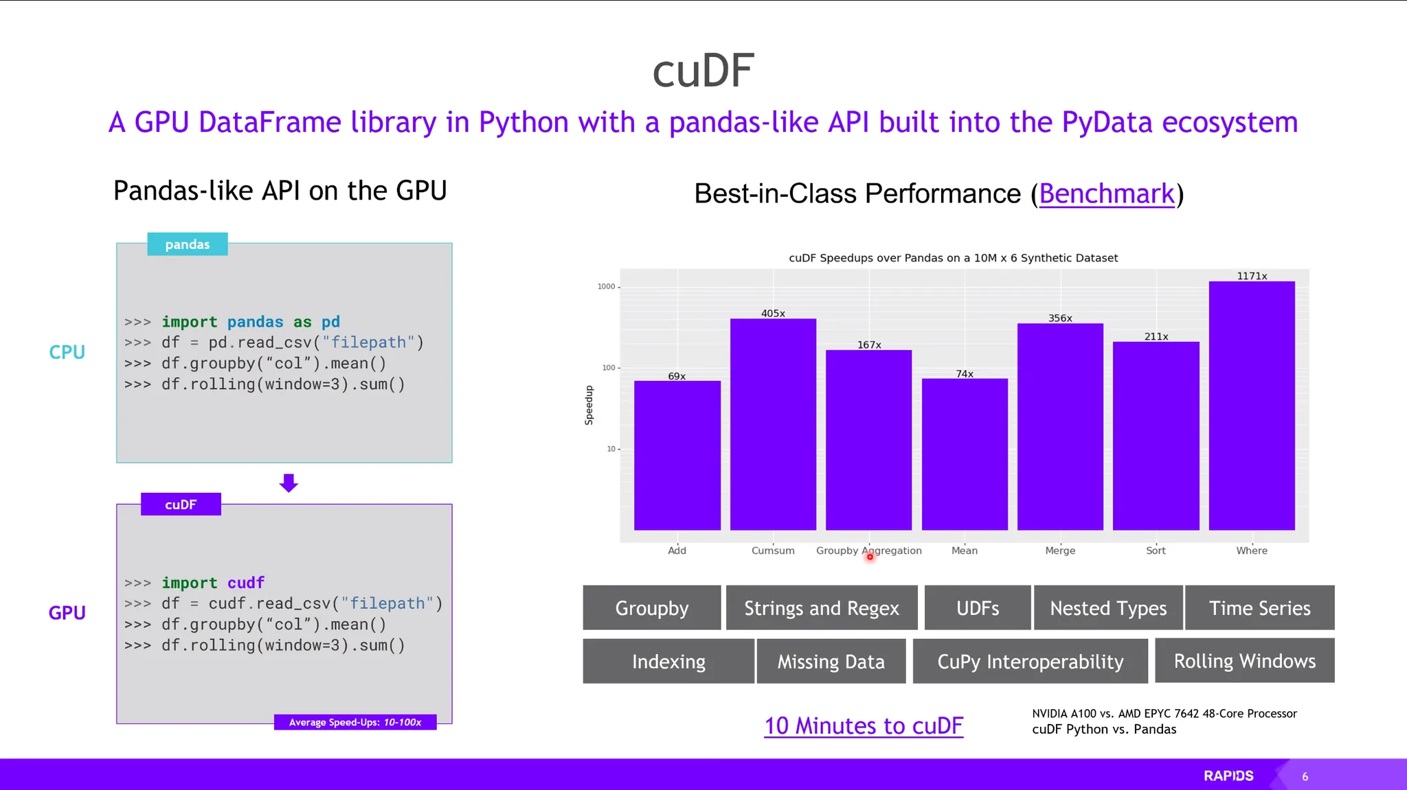 Pandas를 GPU기반으로 가속하는 라이브러리. (69x ~ 1171x)