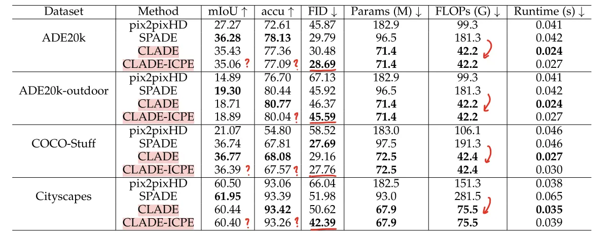 기존 SPADE를 활용한 방법들에서 SPADE→CLADE로 교체하고 실험을 했다.