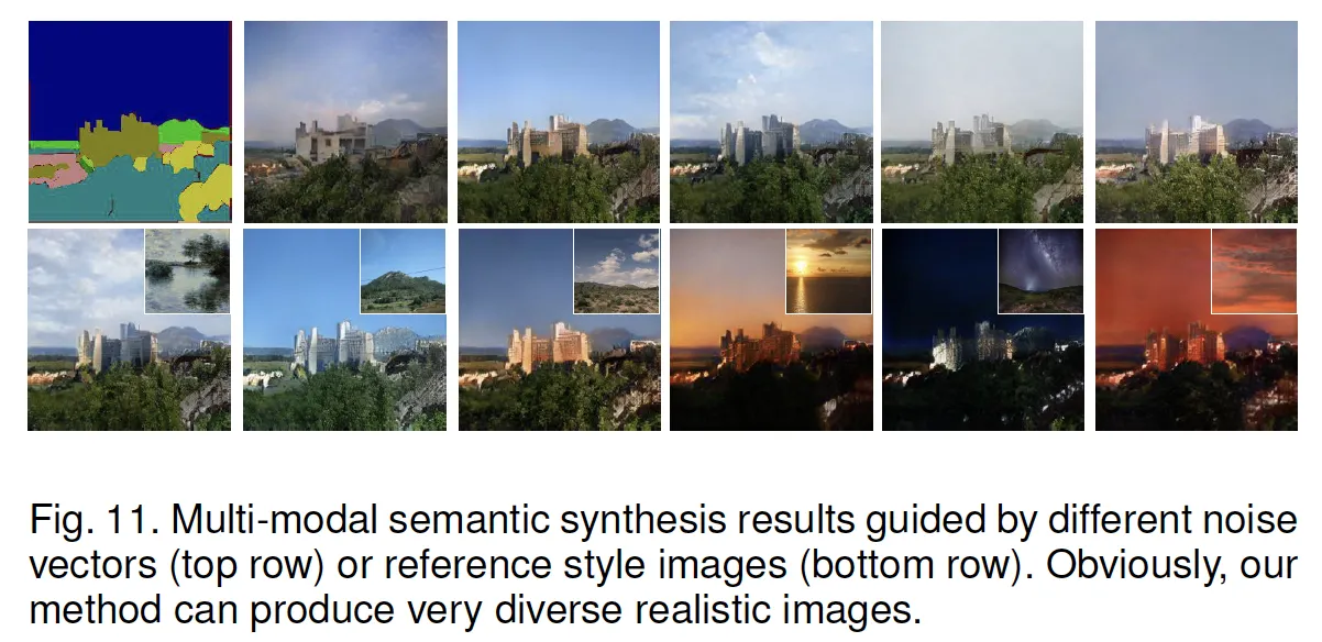 첫번째 열은 같은 Semantic mask에 Nosie Vector로부터 생성된 다양한 이미지들이고